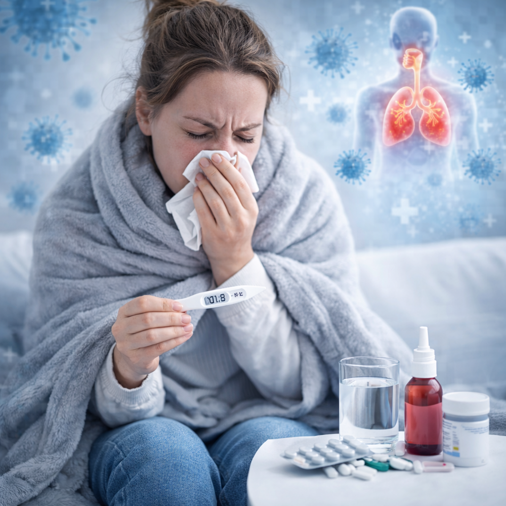 Flu symptoms typically come on suddenly and include fever, chills, body aches, fatigue, sore throat, cough, and headaches. Some patients also experience nasal congestion, vomiting, or diarrhea. While most healthy adults recover within one to two weeks, the flu can be serious — and even life-threatening — for young children, seniors, pregnant women, and those with underlying health conditions such as asthma, diabetes, or heart disease.