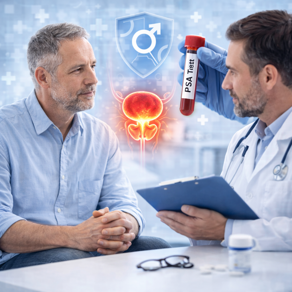 Our prostate health services include PSA (prostate-specific antigen) blood testing, digital rectal examination (DRE) for appropriate patients, evaluation and management of BPH symptoms, monitoring for patients with previously diagnosed prostate conditions, and coordination with urology specialists when further evaluation or intervention is needed.